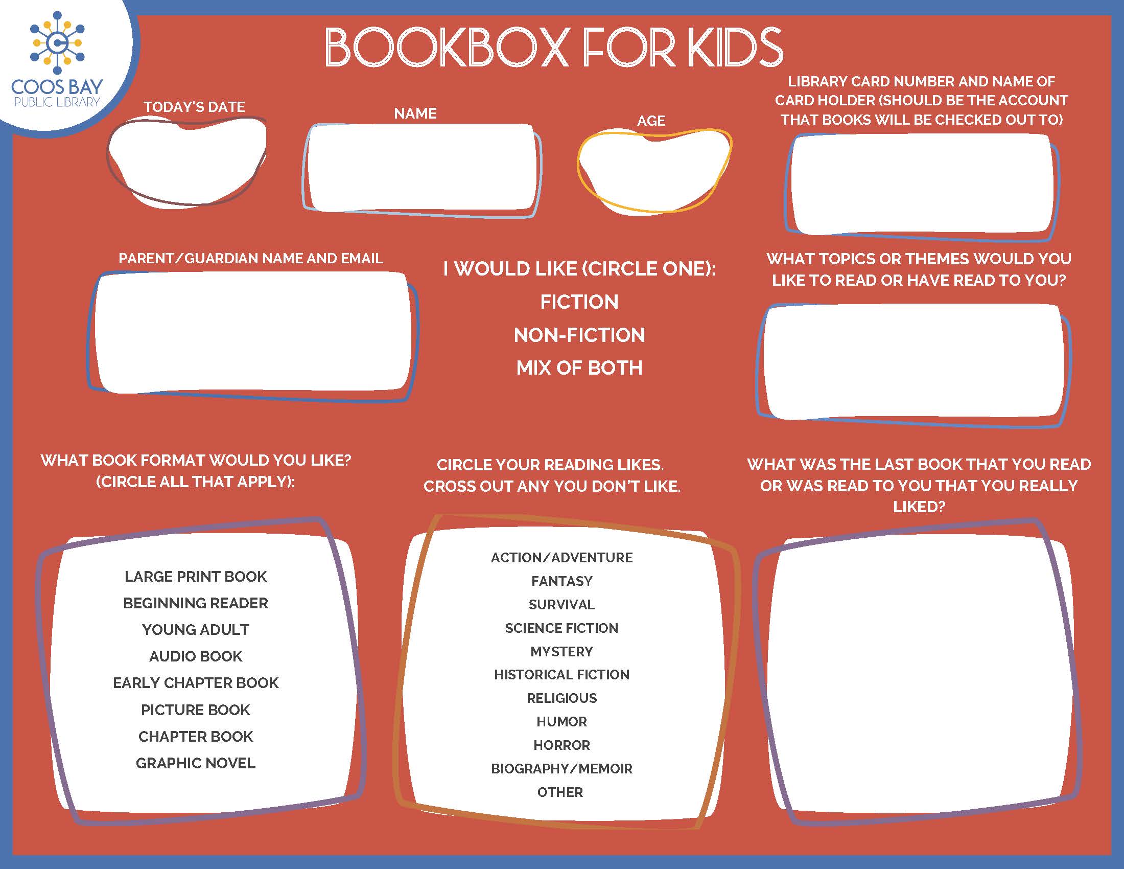 The Coos Bay Public Library is currently accepting applications for the BookBox Program for Kids